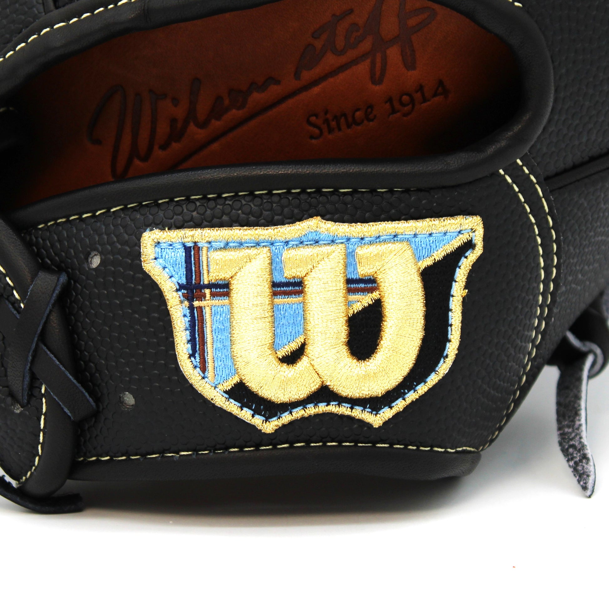 背面の皮革はスーパースキンを採用。通常皮革の約1/2の軽さでありながら約2倍の耐久性を持つWilson独自の皮革です。さらには、水を染み込ませない、汚れを付けない優れものです。